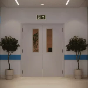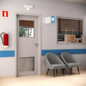 Porta em LAP com alta resistência a impactos, riscos e intempéries, ideal para áreas externas que exigem durabilidade máxima.