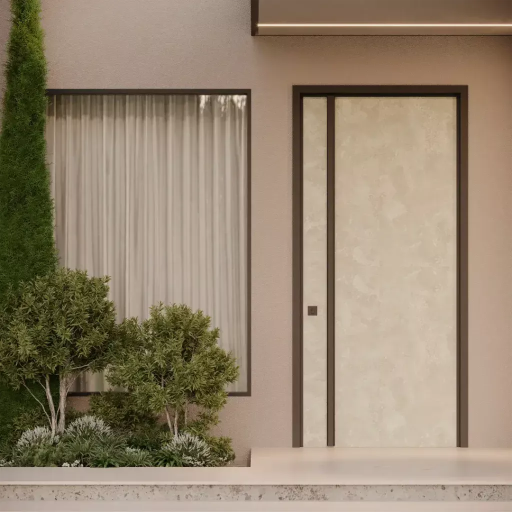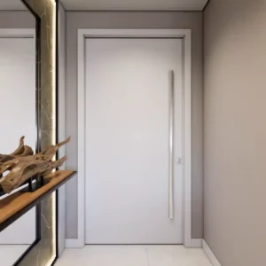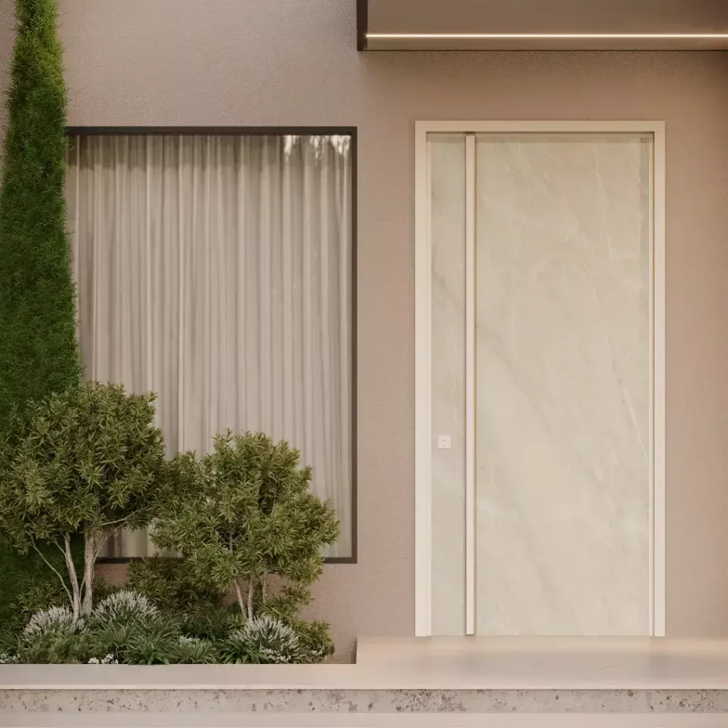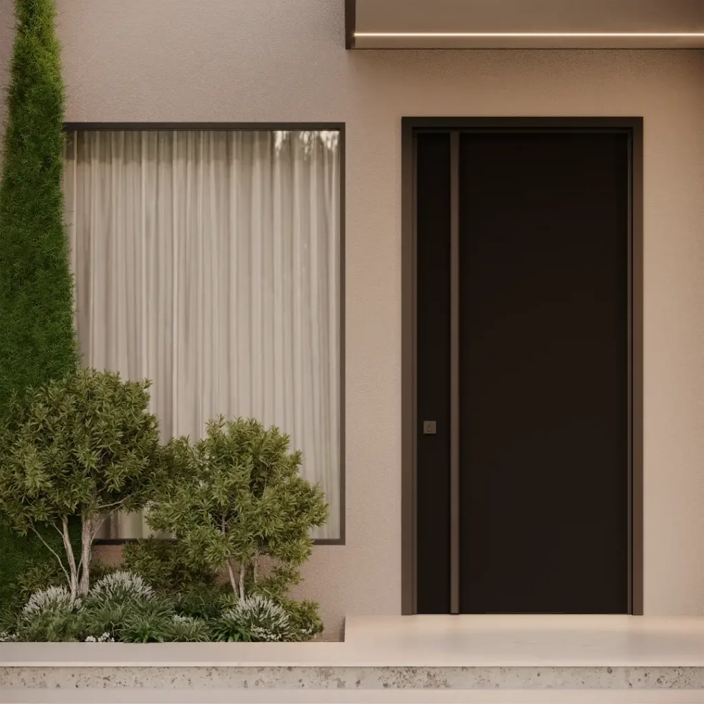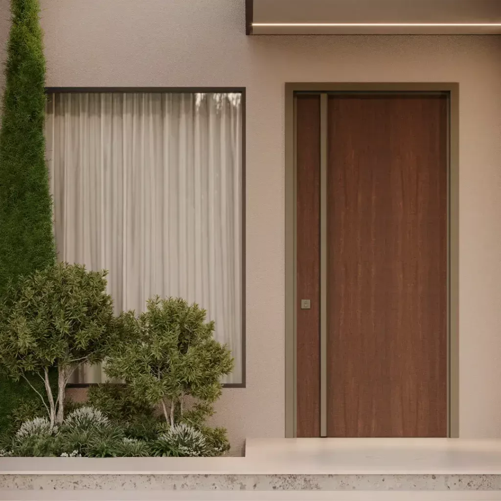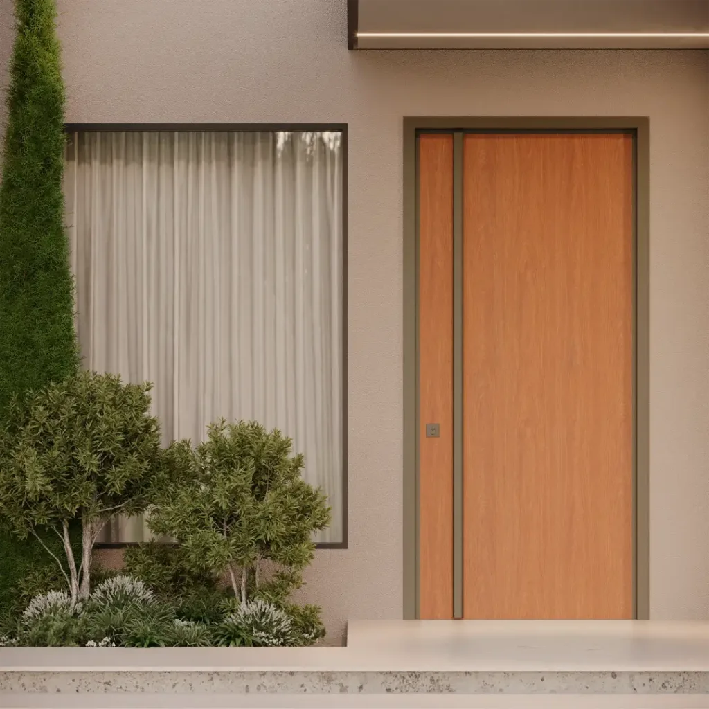 As Portas em LAP são ideais para áreas externas expostas ao sol e à chuva, oferecendo máxima resistência e personalização. Escolha entre sistemas pivotantes ou de giro e combine diferentes cores para a face externa e interna.