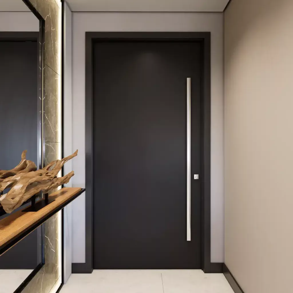 Porta pivotante com acabamento impecável, ideal para entradas que pedem elegância e economia de espaço.